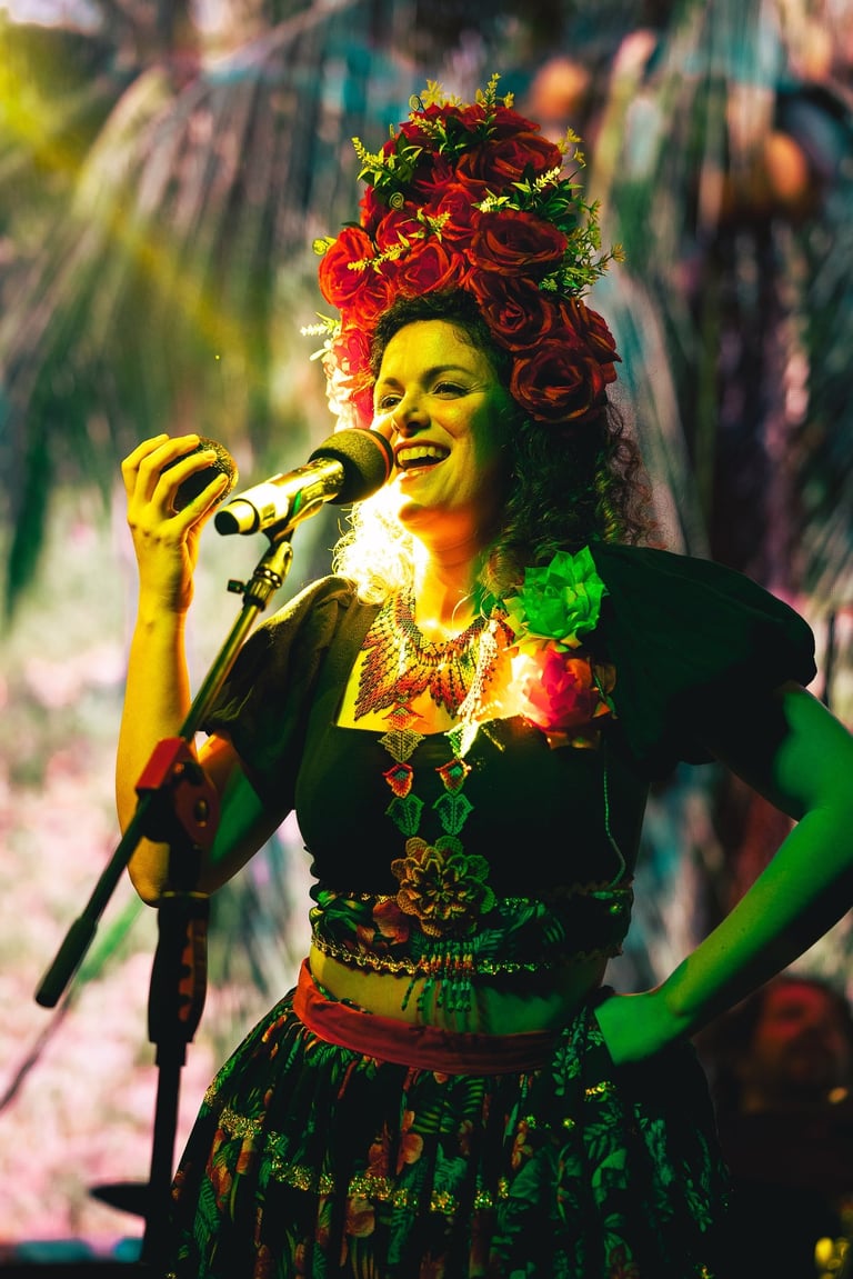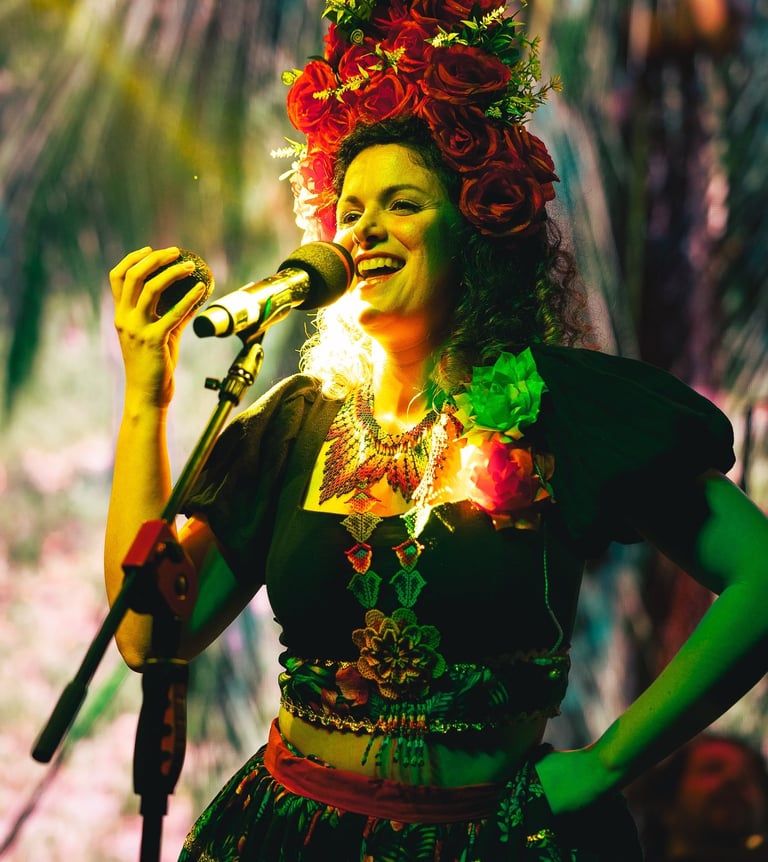 Shary Rose is a performer-composer who sings, plays guitar, light percussion, and an ever-growing collection of sound healing instruments. Her unique musical voice explores the power of Alternative Rock, the roots of Latinamerican Folklor, and the spiritual groove of Funk, infused with experimental frequencies, crystal quartz instruments, visual art, folk dance, feminine energy, and latin jazz vocal improvisation. She has collaborated with Panamanian artist Cienfue since 2017. Her upcoming debut album, born from her profound healing transformation from severe endometriosis, offers an intuitive exploration of music as medicine. In addition to her performance and compositional work, Shary frequently leads workshops, and lectures at local festivals, cultural and wellness events, and helps both professional and hobbyist musicians master their voice and creative expression through her online music education program.